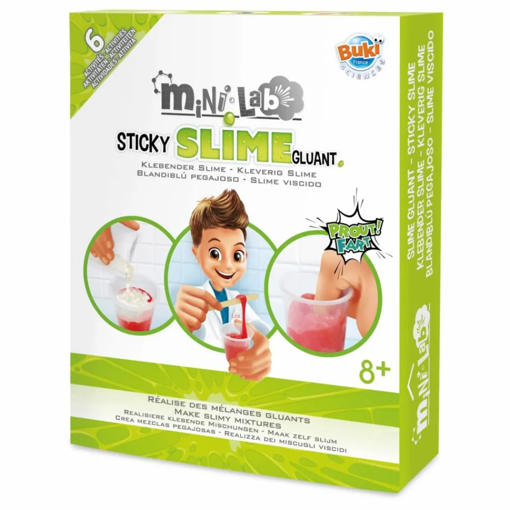 Un coffret pour créer des mélanges gluants sans danger. 6 activités dont : slime gluant, balle rebondissante, pâte à prout…