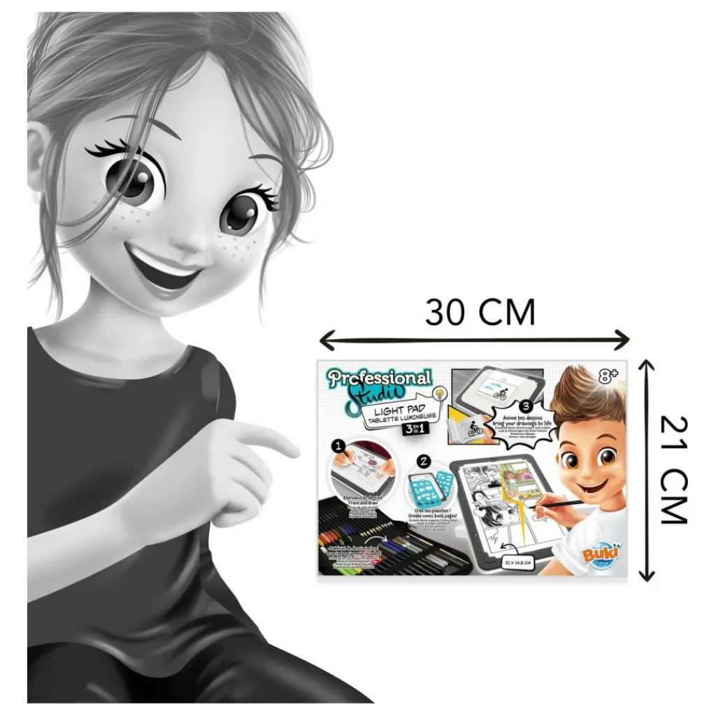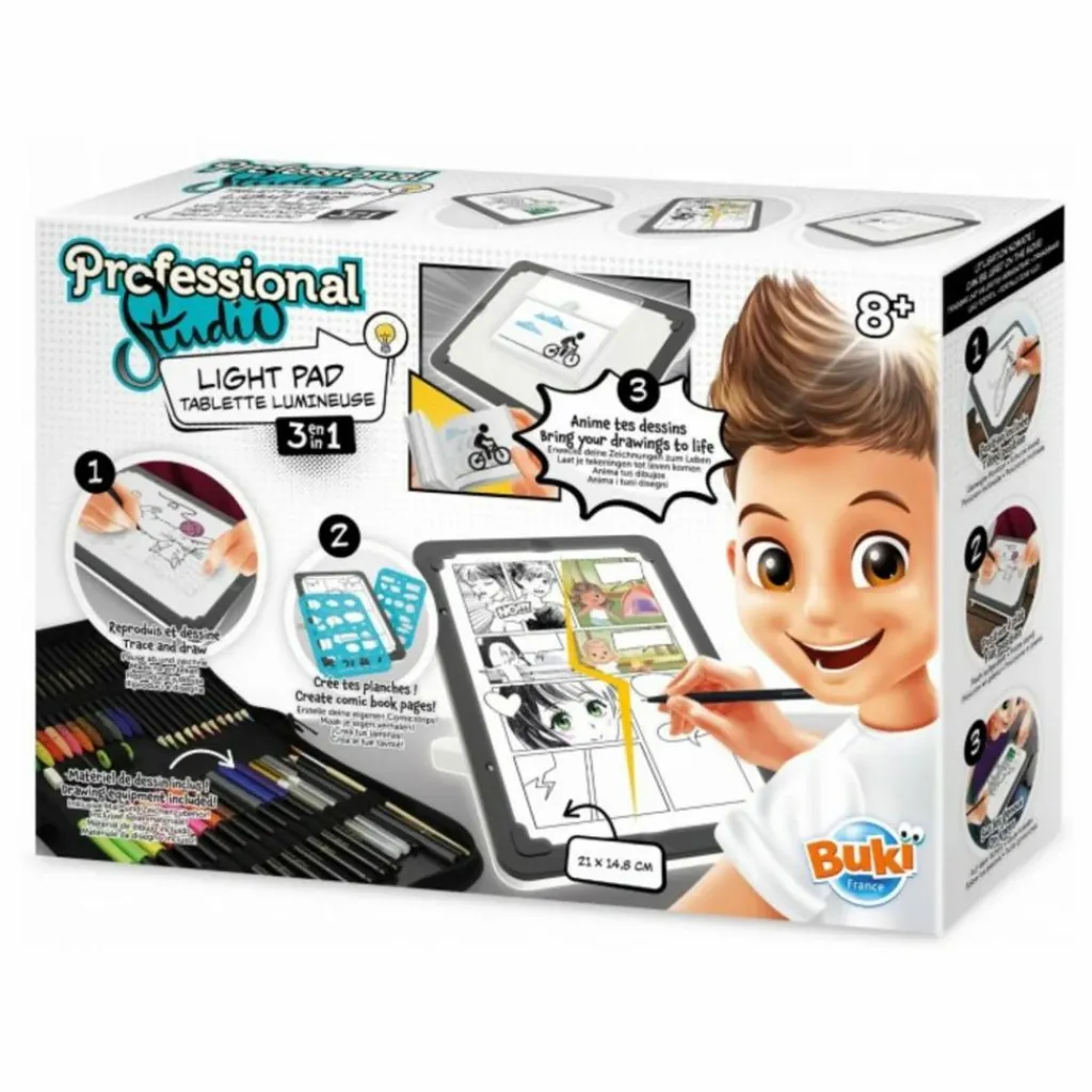 - Une tablette lumineuse nomade qui permet de dessiner, de décalquer, de créer des BD et même des carnets animés !