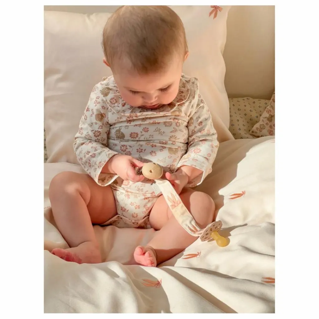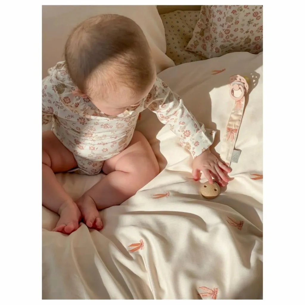 - Gardez la sucette de votre bébé à portée de main et non sur le sol grâce à notre attache-sucette brodée au motif de nœuds romantiques. Fabriqué en coton biologique certifié GOTS, ce charmant porte-sucette est orné d’une délicate broderie de nœuds roses. L’attache sécurisée se fixe facilement aux vêtements de votre bébé, garantissant que la sucette reste propre et à portée de main. Le porte-tétine Bows allie fonctionnalité et fantaisie, ce qui en fait un accessoire pratique et élégant pour votre enfant.