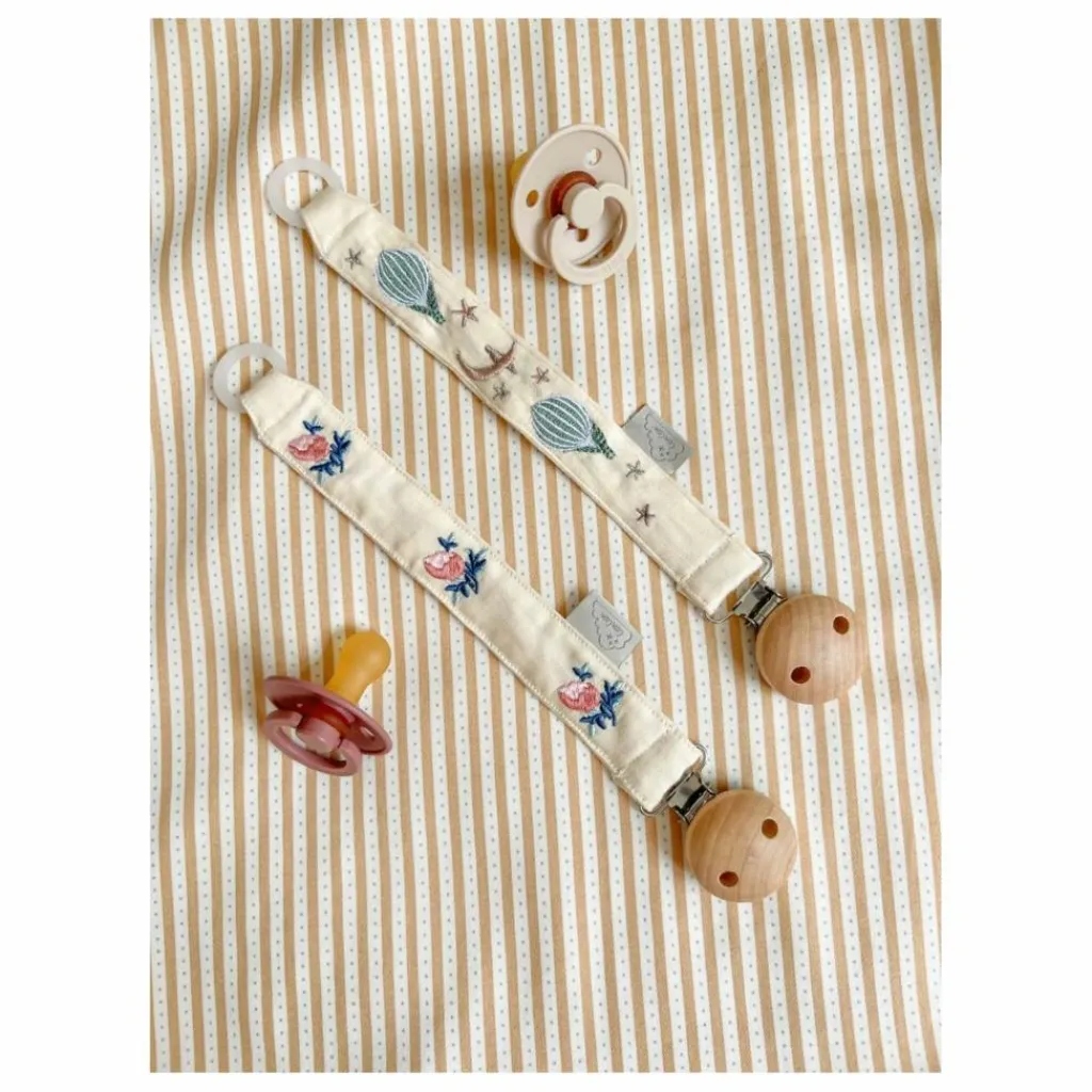 - Gardez la sucette de votre bébé à portée de main et non sur le sol grâce à notre porte-sucette brodé au motif poétique Dreamland. Fabriqué en coton biologique certifié GOTS, ce charmant porte-sucette est orné de délicates broderies représentant des hippocampes enchanteurs. L’attache sécurisée se fixe facilement aux vêtements de votre bébé, garantissant que la sucette reste propre et à portée de main. Le porte-tétine Sea Garden allie fonctionnalité et fantaisie, ce qui en fait un accessoire pratique et élégant pour votre enfant.