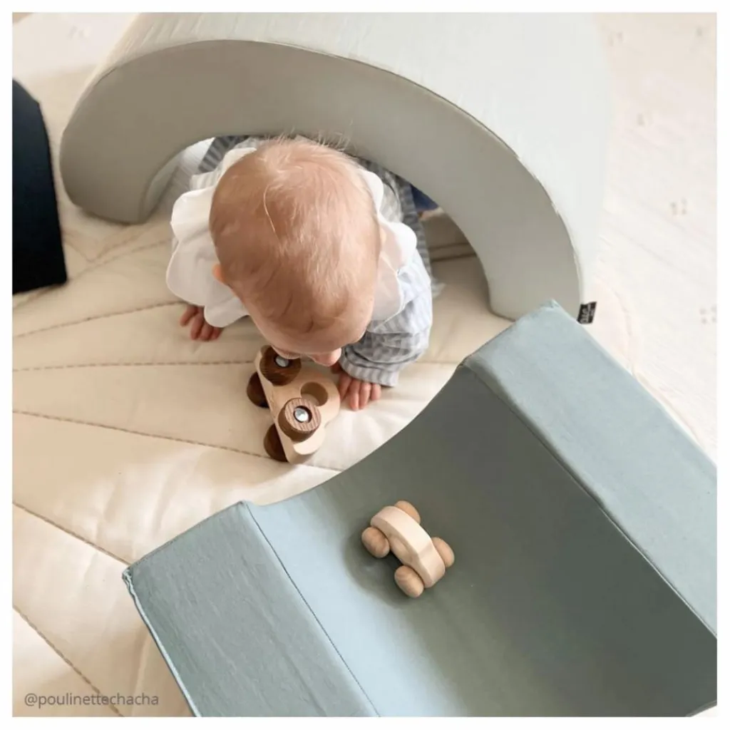 Ce module de motricité Arc-en-ciel est composé de trois coussins en demi-lune qui s’encastrent les uns dans les autres. Jeu ludique et poétique, il peut servir de pouf, de cabane, de tunnel ou même de jeu de construction. C’est également un très bel objet de décoration dans la chambre de votre enfant.