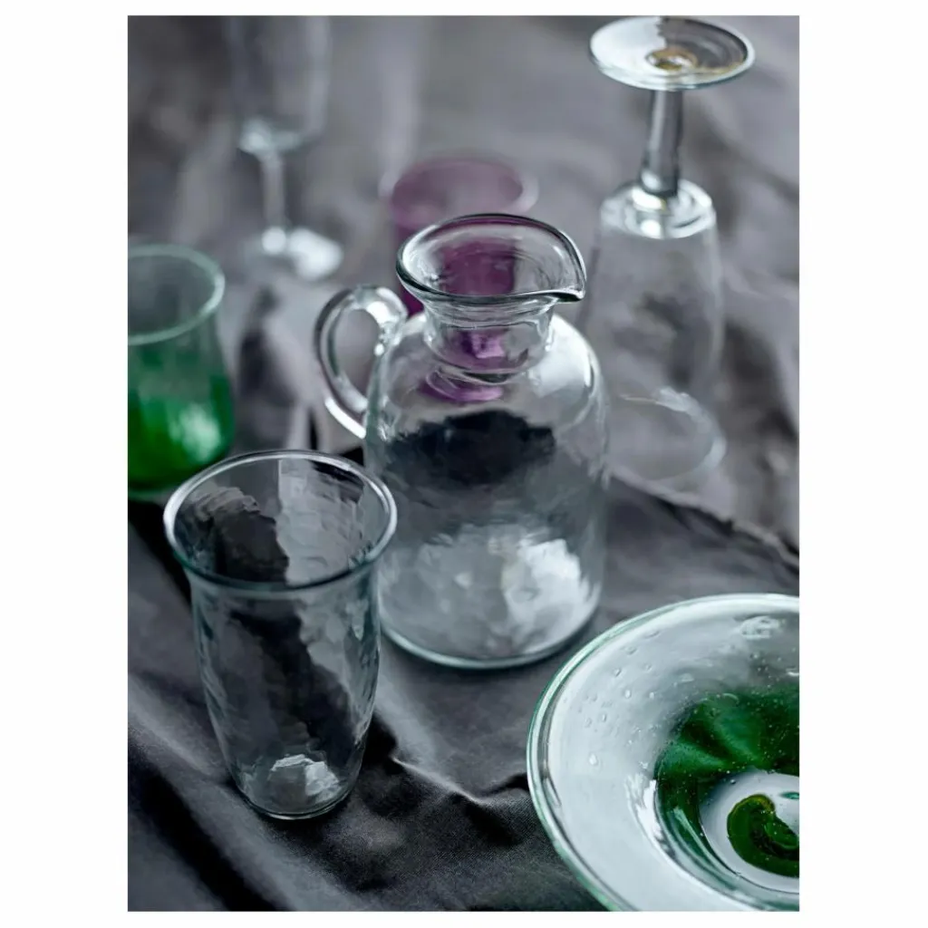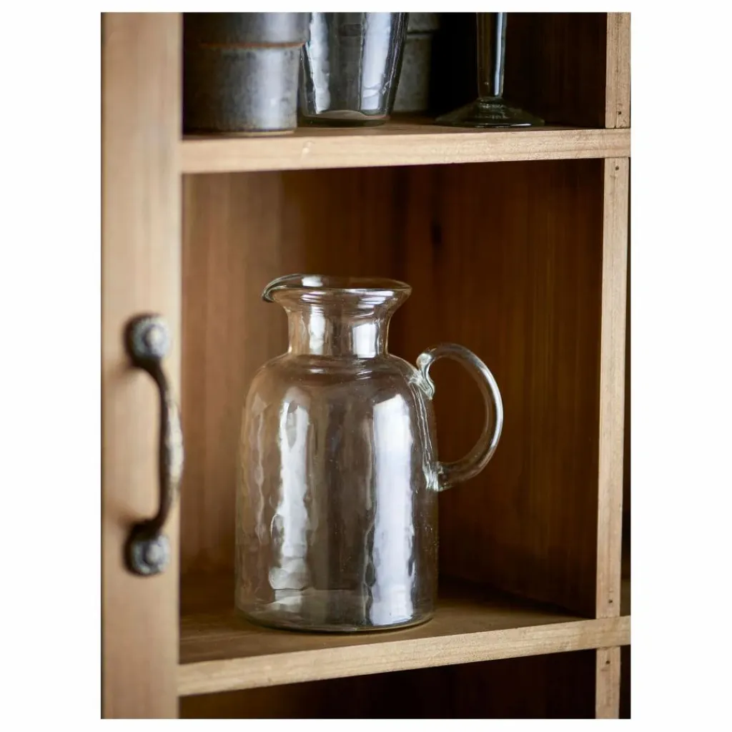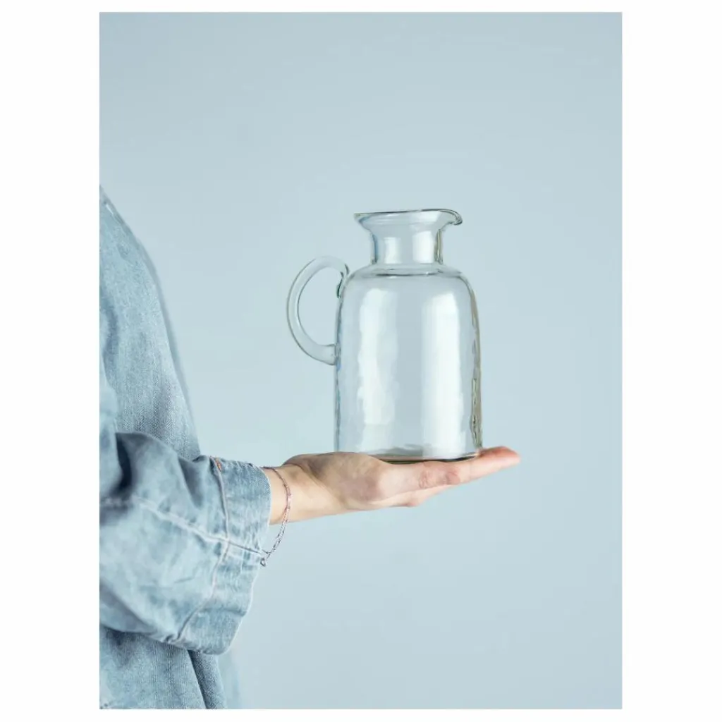 - Le Pichet Asha de Bloomingville est soufflé à la bouche en verre transparent avec une surface légèrement martelée pour un look vibrant. Le Pichet est doté d’un bec verseur pratique et d’une poignée ronde, ce qui le rend idéal pour servir de l’eau, du jus ou d’autres boissons.