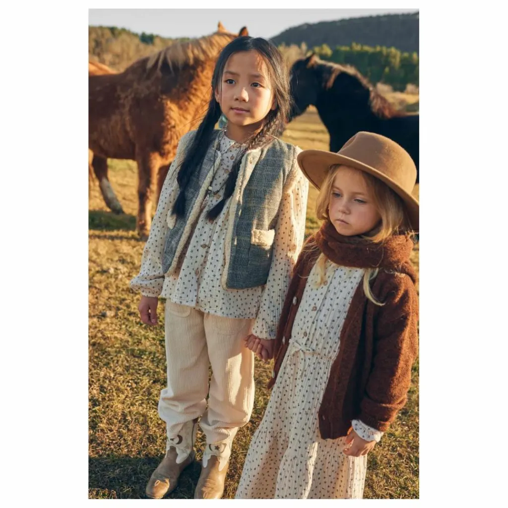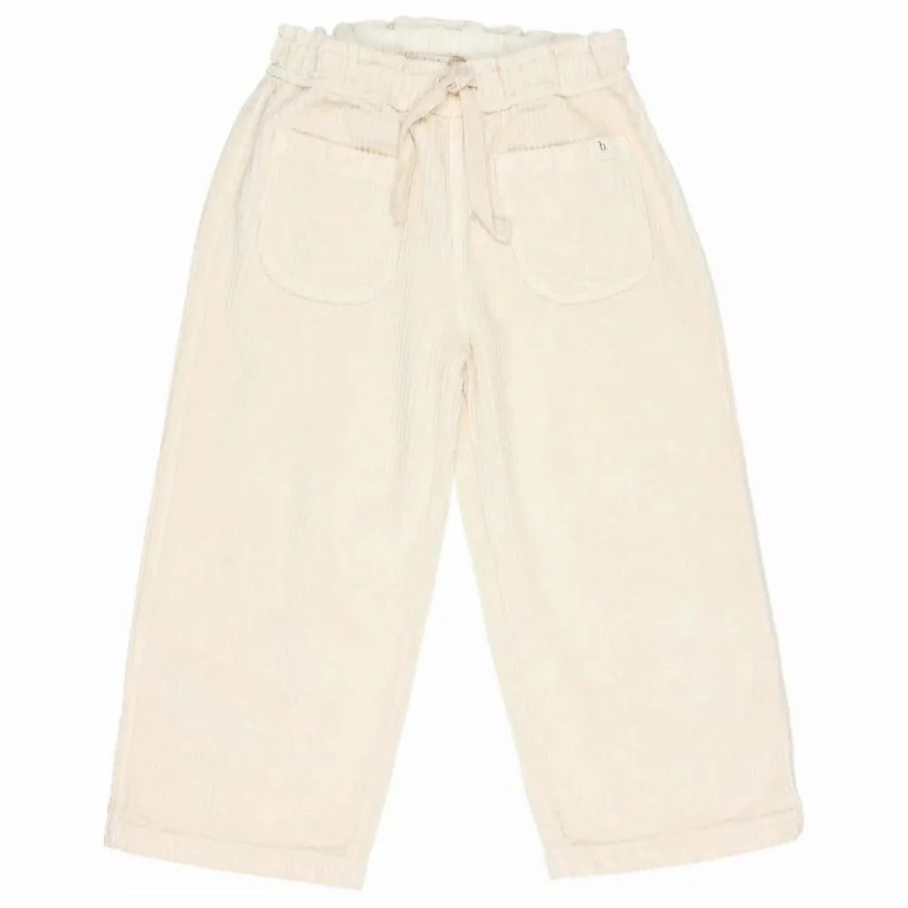- Pantalon girly en velours côtelé. Taille élastique avec cordon de serrage. Poches plaquées sur le devant avec étiquette.