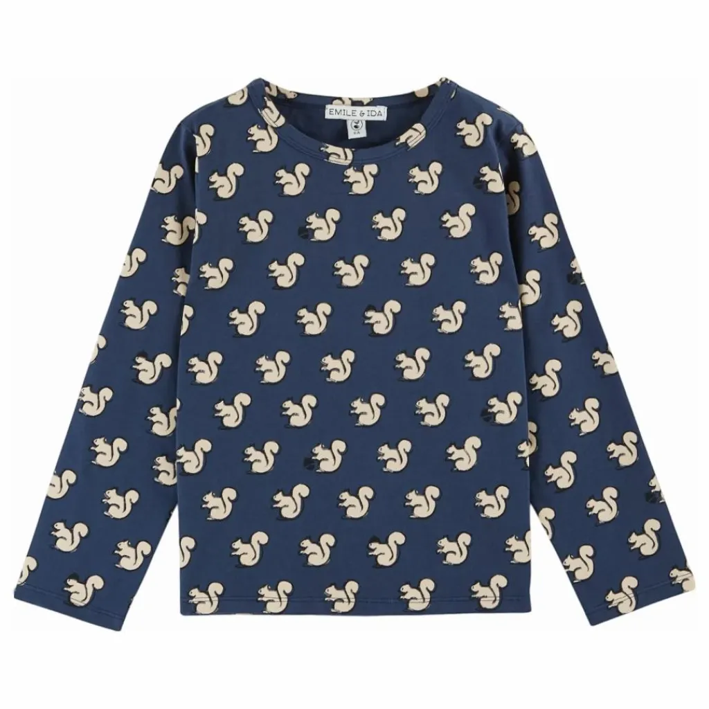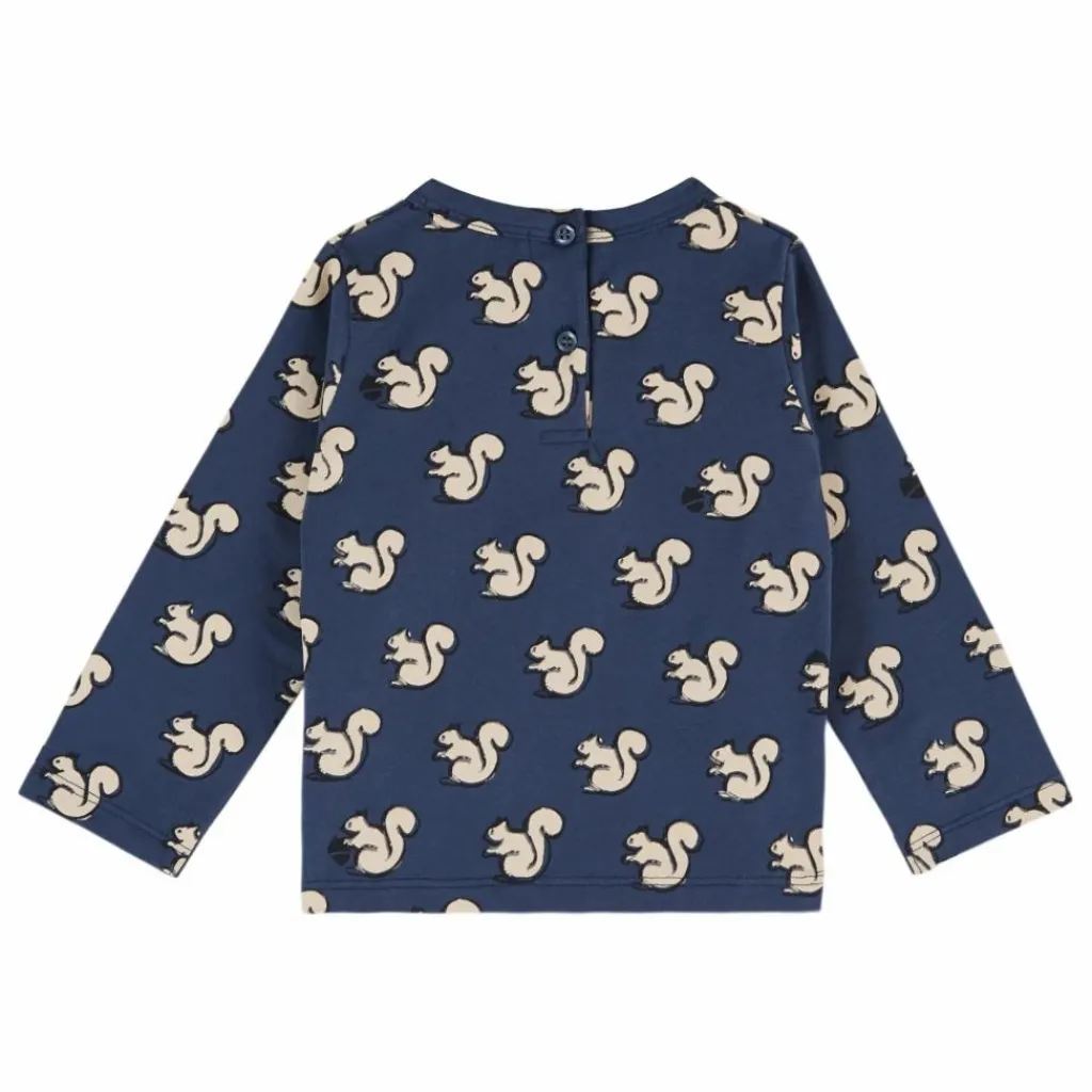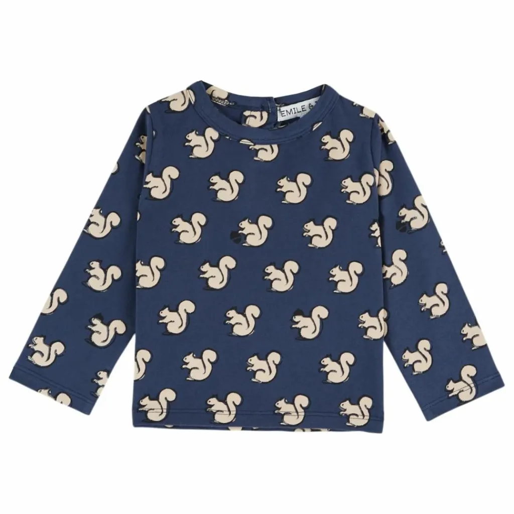 - Tee-shirt à manches longues en jersey de coton biologique gris clair imprimé d’un écureuil New Yorkais.
