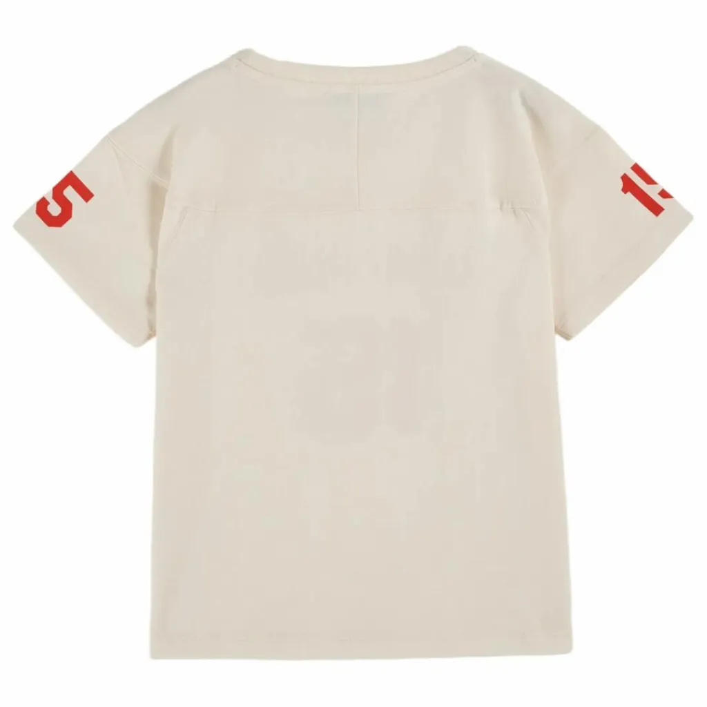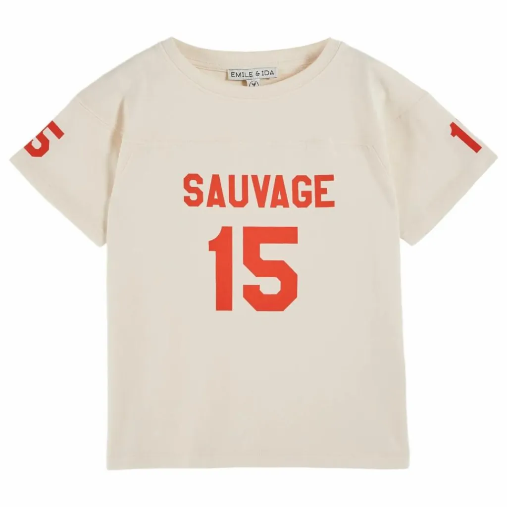 Un tee-shirt de première classe fabriqué dans un coton tout doux, mais il n’est pas réservé aux premiers de la classe. D’ailleurs, il est imprimé en blanc sur le devant « Team Happy » et porte le n° 15.