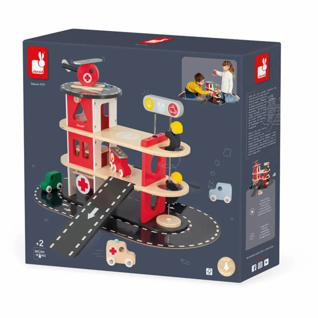 - Inclus 10 accessoires en bois : 2 voitures, 1 hélicoptère, 1 feu tricolore, 1 borne incendie, 1 feu et 3 pompiers