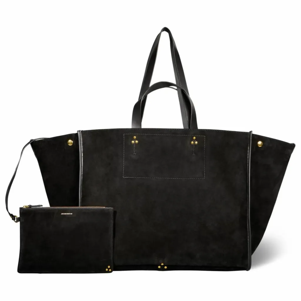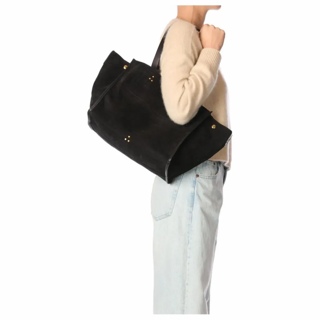 - Sac cabas, porté main ou épaule. Poignées en cuir. Fermeture par des pattes en cuir pressionnées.