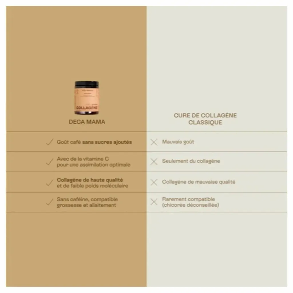 - La poudre de collagène marin et vitamine C au délicieux arôme café sans caféine, pour soutenir la peau. Idéal avant, pendant et après la grossesse.