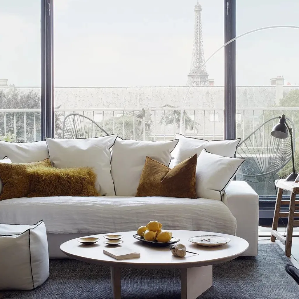 - Détails : Plumes de canard, Boutons en nacre retournés, 1 coussin