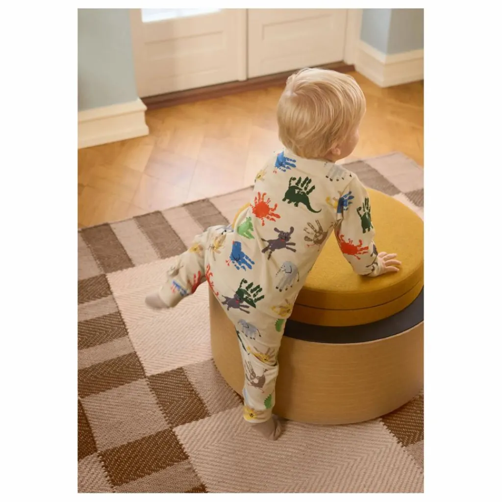- Ce pantalon beige de Molo est fabriqué en jersey de coton biologique et présente un imprimé d’empreintes de mains colorées ressemblant à des animaux. Le pantalon est doté d’un large élastique à la taille et aux ouvertures des jambes.