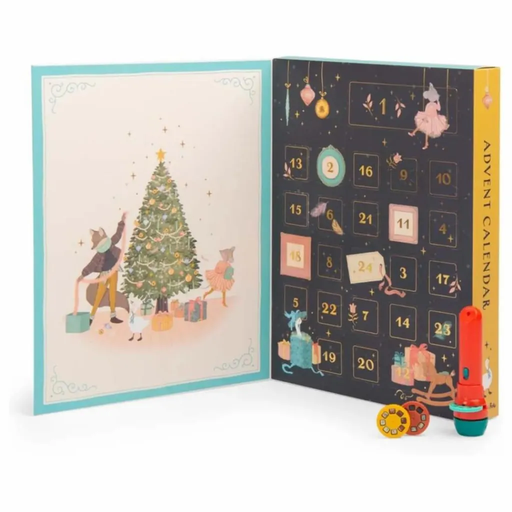 - Calendrier de l’avent illustré de la collection La petite école de danse. Il contient une lampe à histoires et 23 disques. Chaque soir, découvrez une nouvelle aventure à projeter en attendant Noël. 11 collections iconiques Moulin Roty à découvrir.
