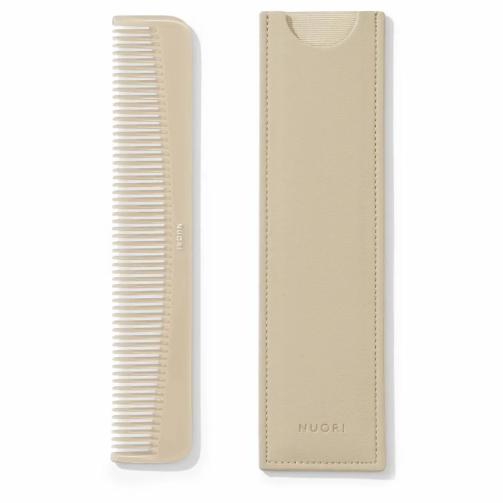 - Matériaux : Peigne en acétate de cellulose, Housse en cuir vegan