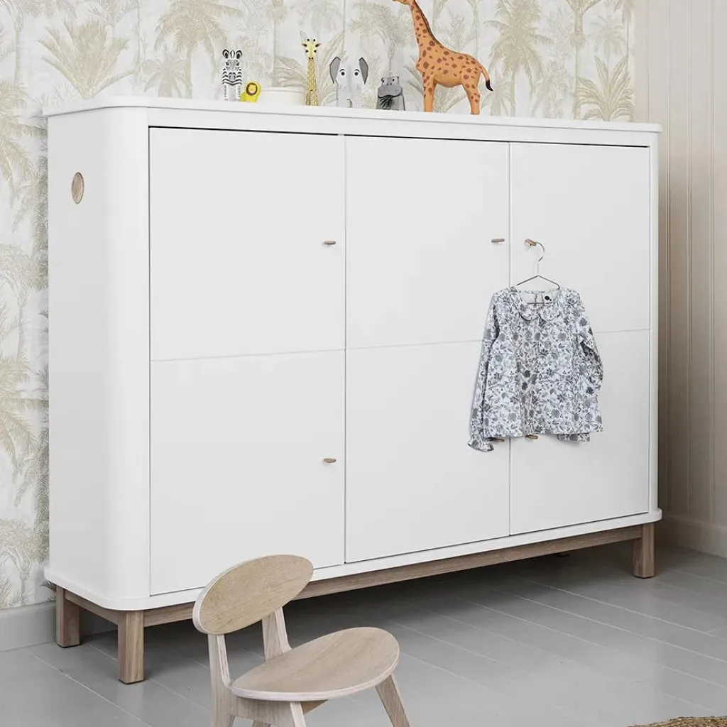 L’armoire Wood est conçue comme un meuble aux multiples fonctions. Ses bords arrondis lui offrent une légèreté visuelle. Elle dispose de crochets intégrés de chaque cotés, afin de suspendre peignoir, tenue du jour, etc. Ils s’intègrent parfaitement à l’armoire ce qui leur créer une fonction à la fois décorative et pratique. Sa profondeur est basée sur la largeur d’un cintre pour vêtements d’enfants.