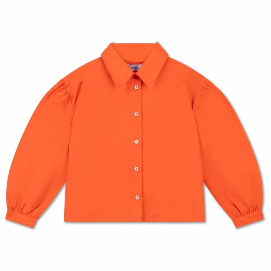 - Chemisier court – Radiant Orange Ce chemisier court se décline dans une couleur orange audacieuse et présente des épaules bouffantes pour une allure remarquée. Elle se boutonne sur le devant et possède un col classique. Une pièce pointue qui allie classicisme et modernité.