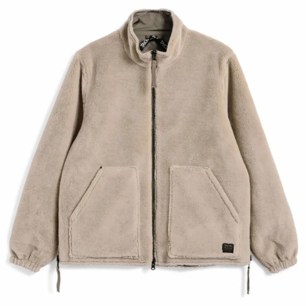 L’extérieur est en tissu ripstop militaire léger et haute densité, également utilisé pour les doudounes, tandis que l’intérieur est en micro-boa, ce qui la rend réversible pour un style polyvalent.