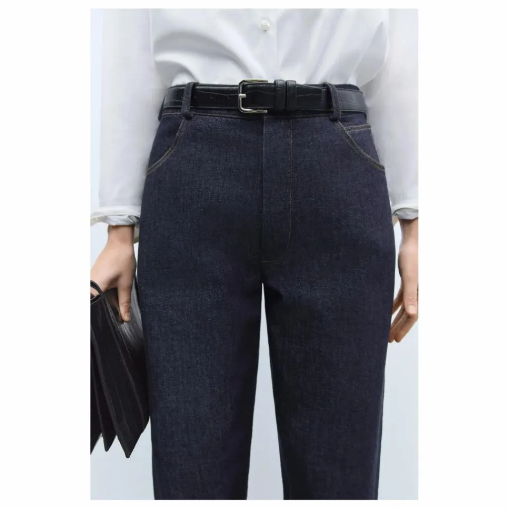 - Conçu pour un usage quotidien, ce pantalon présente une ceinture élastique à l’arrière, une taille haute et une jambe droite. Il est doté de poches latérales et arrière, ainsi que d’une fermeture à glissière avec bouton. Il est agrémenté de coutures en pointe qui s’incurvent autour de la jambe et de passants pour la ceinture.