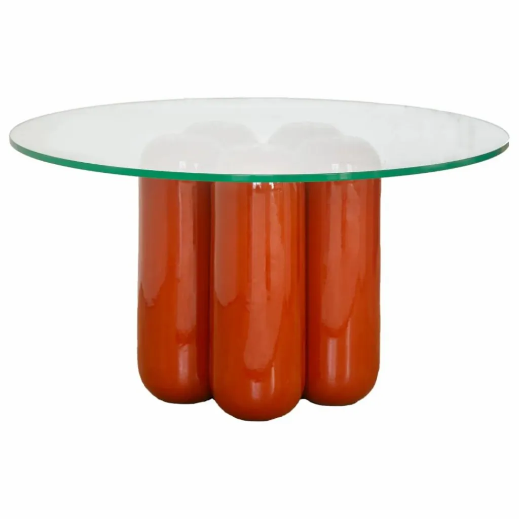 Un grand nombre de combinaisons est possible ! Chaque pied en céramique est à associer avec le plateau de votre choix ; le plateau en verre pour de la transparence et légèreté, le plateau responsable à base de volants de badminton recyclés pour de l’authenticité.