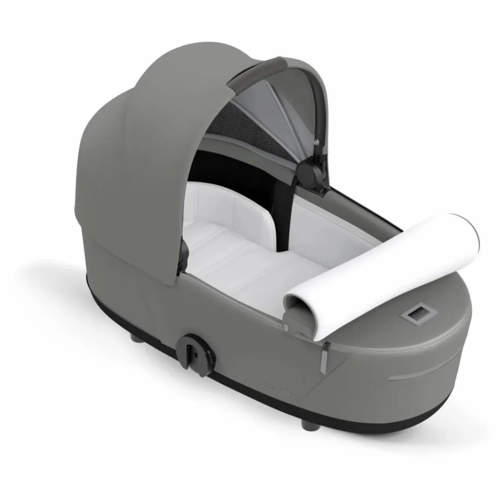 Nacelle Mios Lux Carry Cot : Canopy pare-soleil avec protection solaire UPF50+, Poignée de transport intégrée, Visière extensible, Boutons mémoire, Vue panoramique et ventilation optimale, Matelas extra confort.