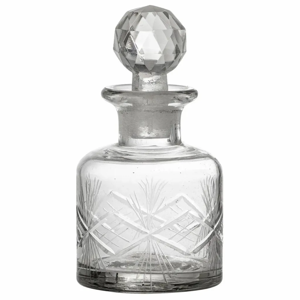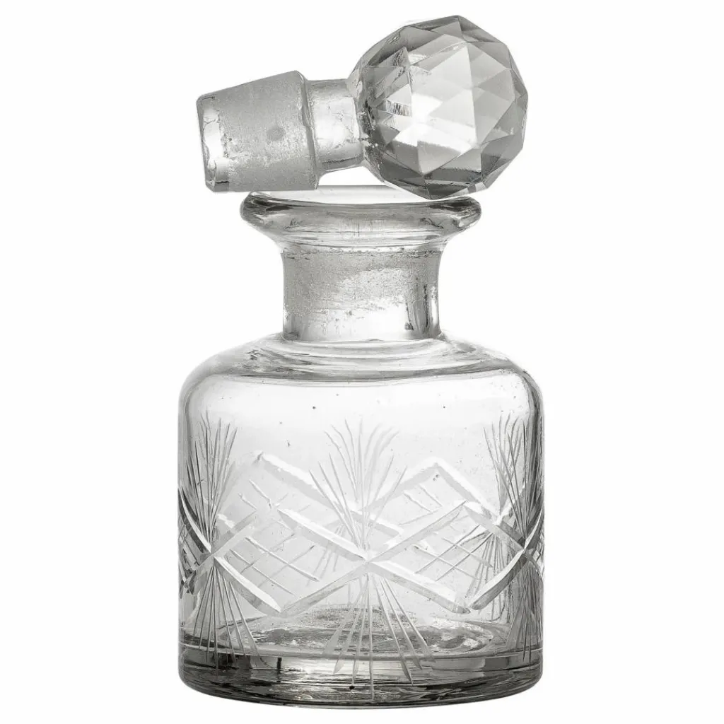 Jolie carafe en verre transparent avec des lignes courbes et droites.