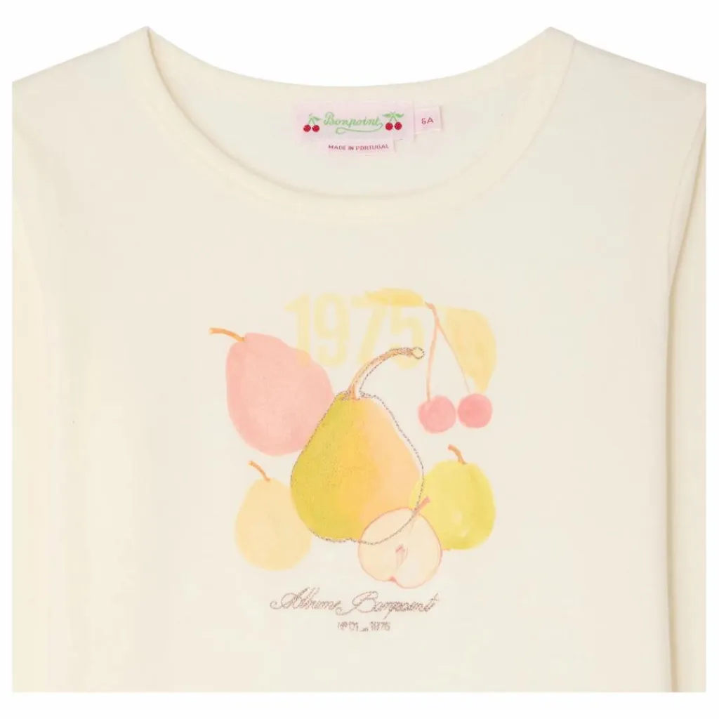 - Le t-shirt Tidjiane pour fille revisite la nature morte avec son ravissant imprimé de poires et cerise devant. Son jersey doux est confectionné en coton issu de l’agriculture biologique. En coton biologiqueCol rondManches longues