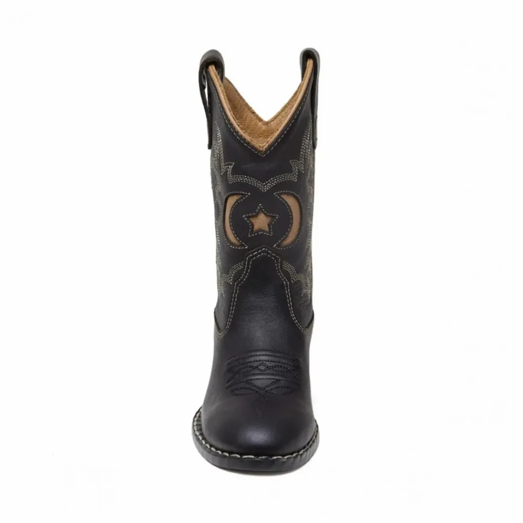 - Languette, Empiècement cuir , Finition surpiquée, Talon carré, Bouts arrondis