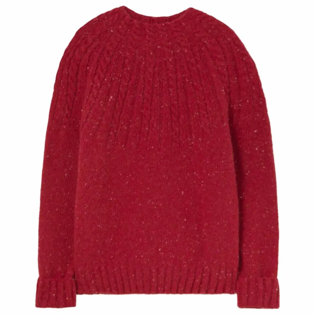 - Pull en tricot doux, moelleux et chaud, combinant les styles uni et tricoté. Encolure ras du cou. Manches raglan. Bordures en côtes aux poignets et à l’ourlet. Subtilement moucheté.