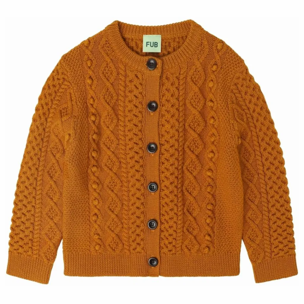 - Tricoté en pure laine mérinos, ce cardigan présente une encolure ronde, des ourlets côtelés et une coupe décontractée. Il se ferme sur le devant à l’aide de boutons en noix de corozo. Le corps et les manches sont tricotés dans un motif graphique d’Aran.