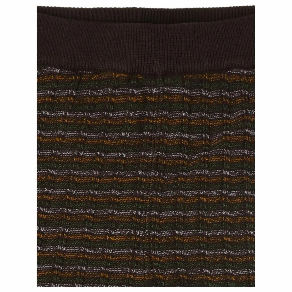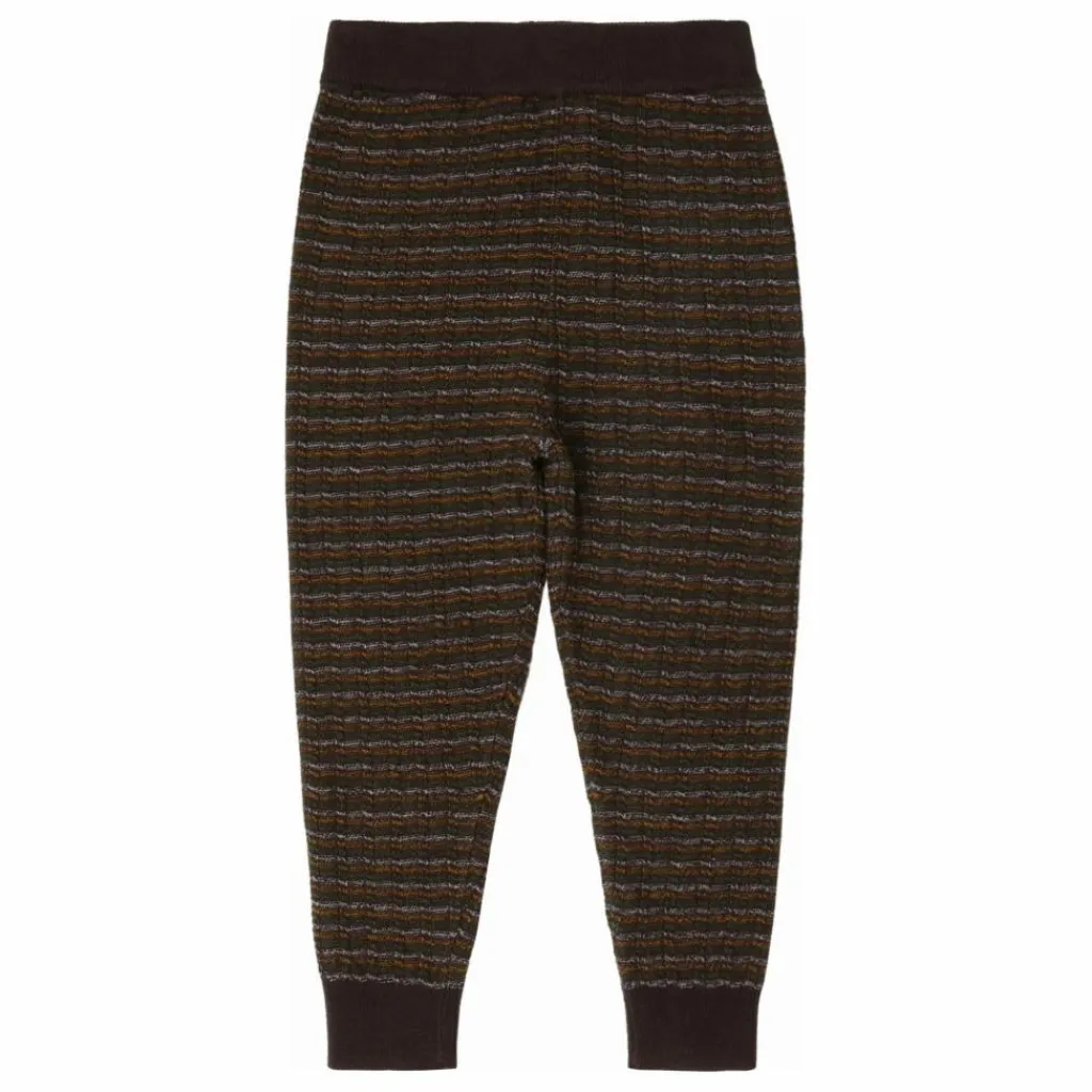 - Ce pantalon est fabriqué en pure laine mérinos et présente une coupe décontractée avec un entrejambe bas. Il est doté d’une ceinture élastiquée pour une coupe confortable et ajustable. Le pantalon est tricoté dans une structure décorative avec des poignets côtelés à l’ourlet. Disponible en version unie et rayée. Doux et confortable, il s’enfile facilement. La laine mérinos est certifiée BLUESIGN® et RWS, exempte de produits chimiques nocifs et provient de moutons non mulets.