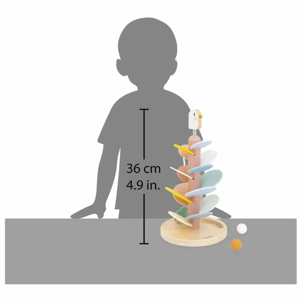 - Un descendeur pour les grands ! Il faut d’abord monter son arbre en installant les 14 feuilles correctement (carte modèle fournie) avant de laisser descendre les balles en bois. S’en suivra une cascade de sons doux et répétitifs déclenchés par les balles sur les feuilles en bois, chaque taille de feuille émettant un son différent. Jouet éducatif en bois FSCTM pour les enfants à partir de 3 ans.