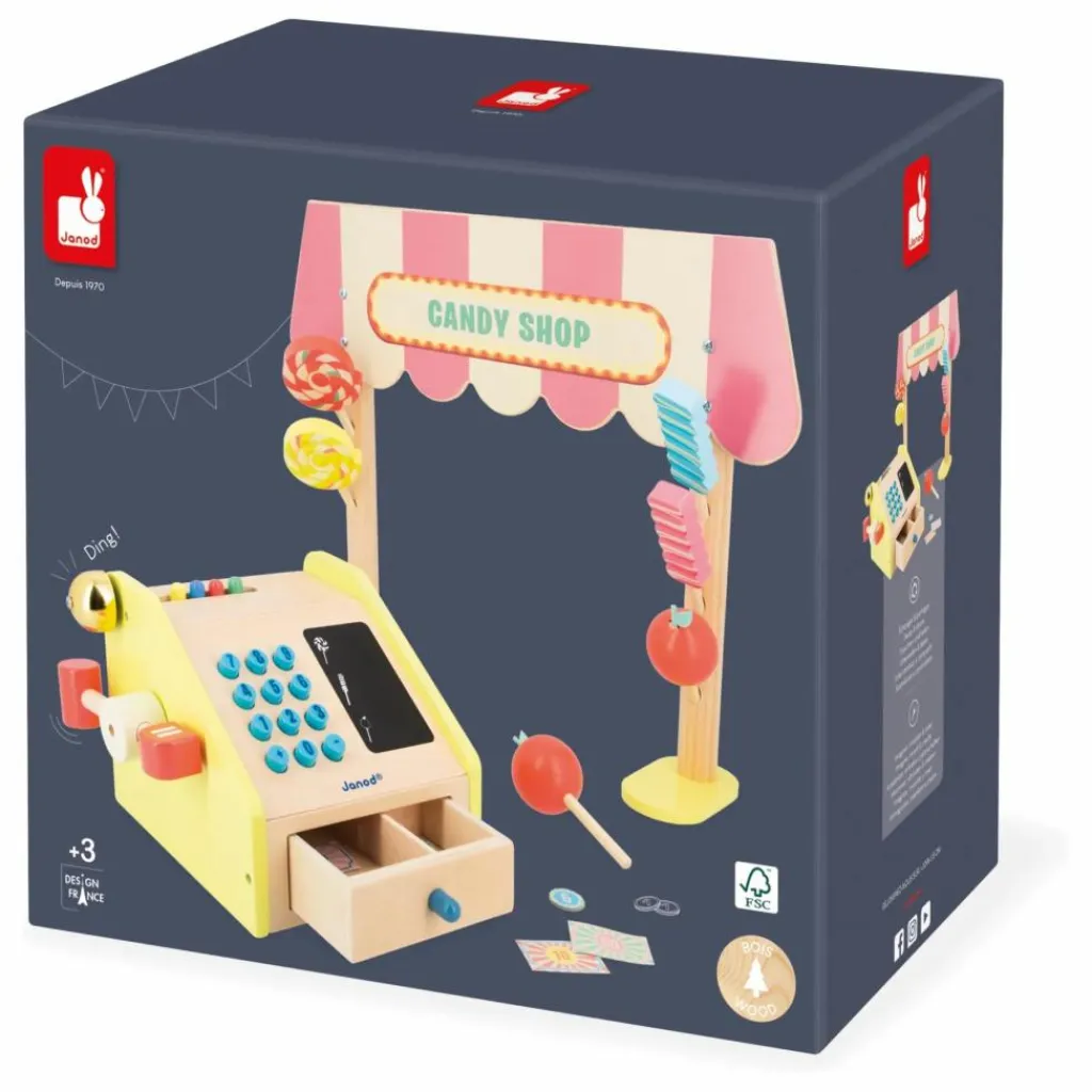 Bienvenue dans l’univers sucré de la fête foraine ! Les atouts de ce jeu de marchande sont nombreux : votre enfant va pouvoir imaginer plein d’histoires et faire comme à l’épicerie. Grâce à cette petite marchande, votre apprenti commerçant pourra s’imaginer vendant des bonbons à ses amis ou à sa famille. Il pourra aussi se projeter dans le rôle du petit vendeur à la fête foraine, stimulant ainsi son imagination.