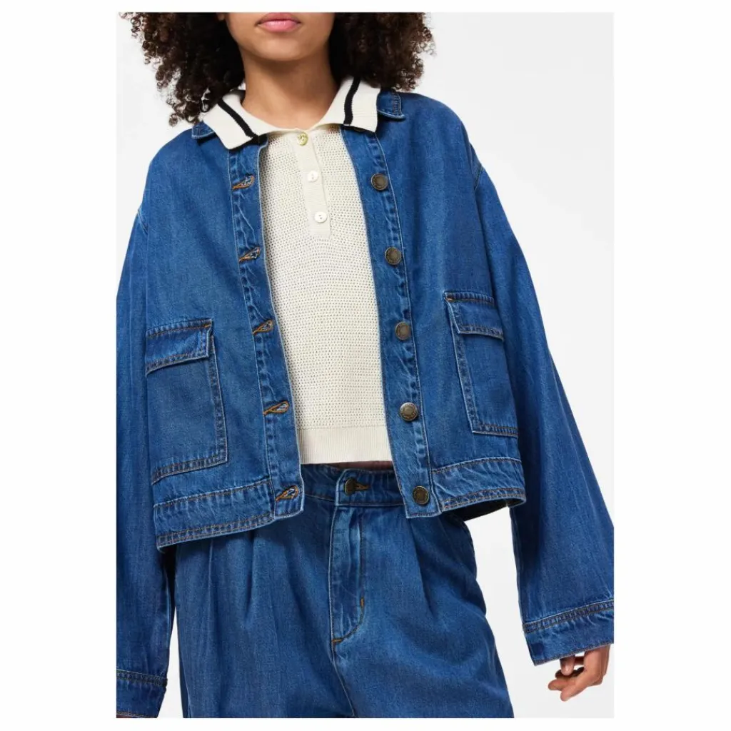 - Cette veste en jean classique est un doux mélange de viscose et de coton, conçu pour le confort et le style. Dotée de grandes poches sur le devant et d’une fermeture boutonnée, elle est parfaite pour les aventures quotidiennes. Une petite étiquette en cuir ajoute une touche d’originalité.
