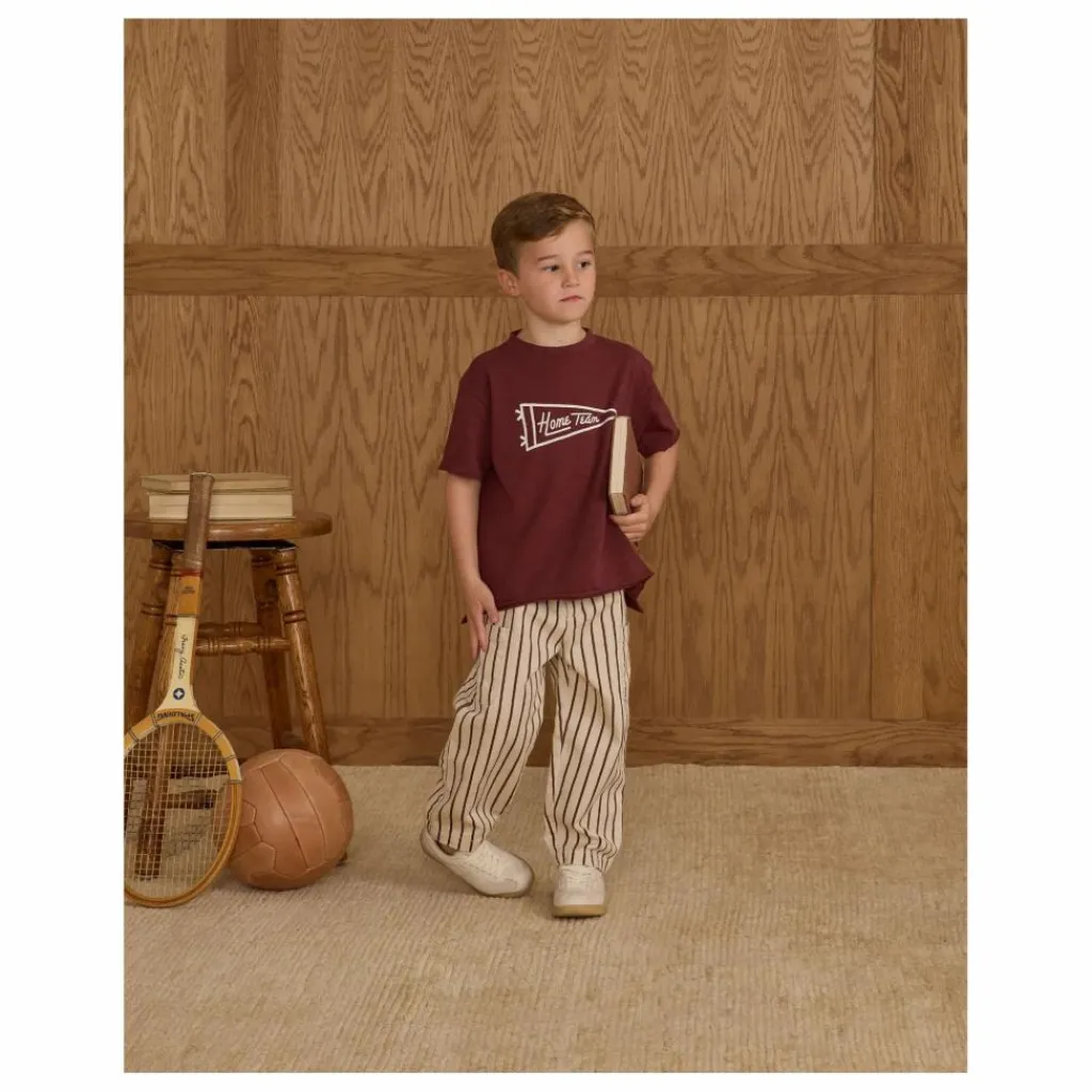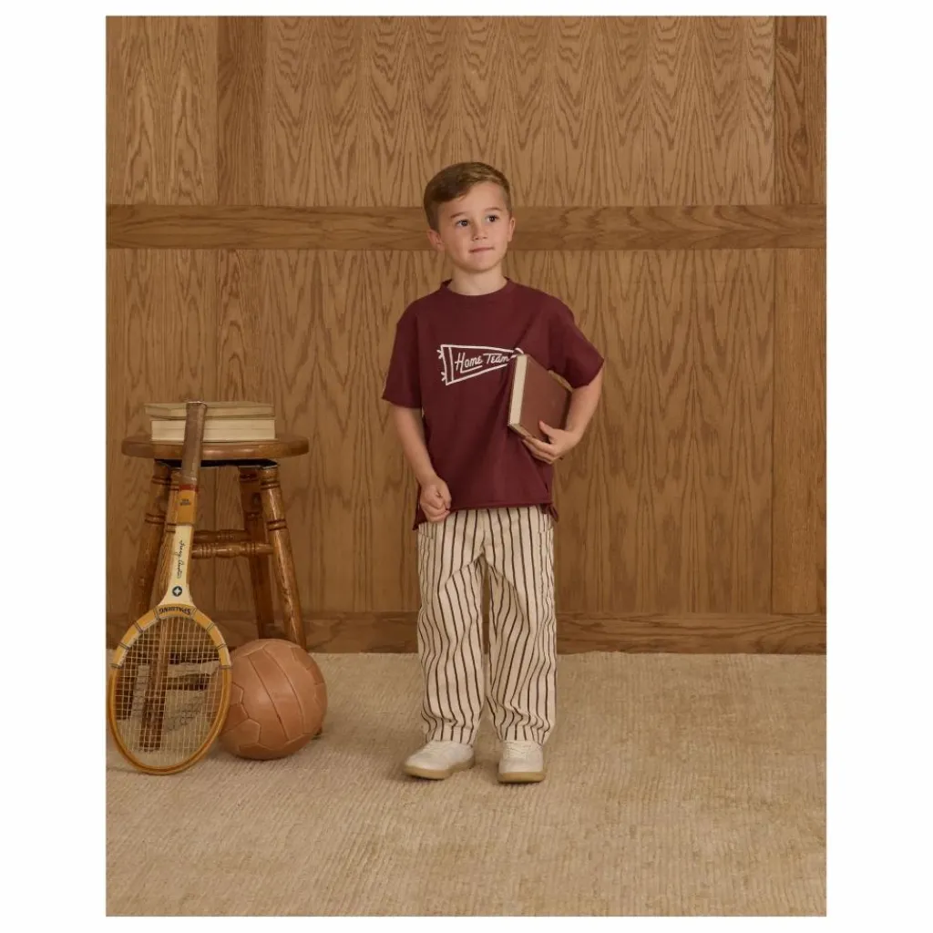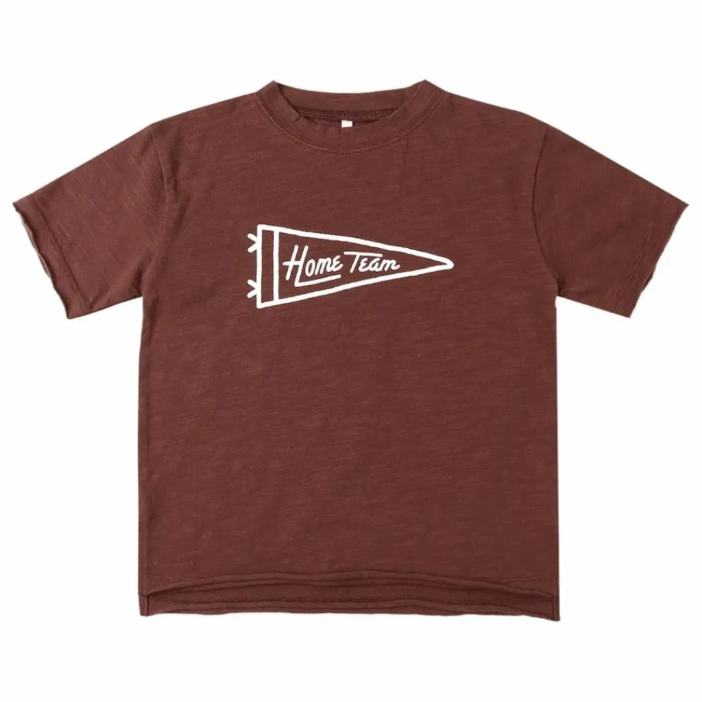 - Ce tee-shirt confortable en coton est doté d’un ourlet à bords bruts pour un look décontracté. Des boutons-pression aux épaules sont inclus dans les tailles 0-3M – 18-24M pour faciliter les changements. Avec notre imprimé « équipe locale » sur notre teinte « bordeaux ».