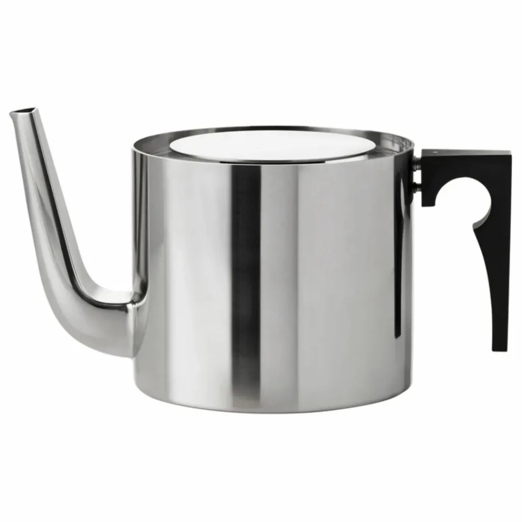 - La théière classique de 1967 est une théière d’une élégance frappante conçue par Arne Jacobsen. Elle est considérée comme une icône du design danois avec son design minimaliste et intemporel. La théière a une capacité de 1,25 litre et a été l’un des premiers produits de la gamme Cylinda-line, qui est fabriquée en acier inoxydable avec des poignées en bakélite caractéristiques.
