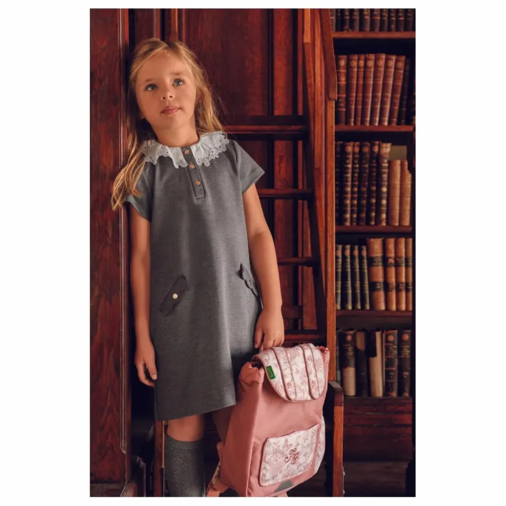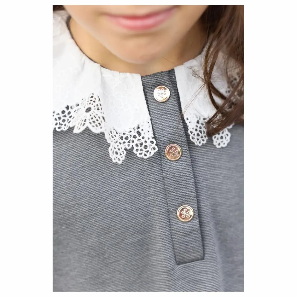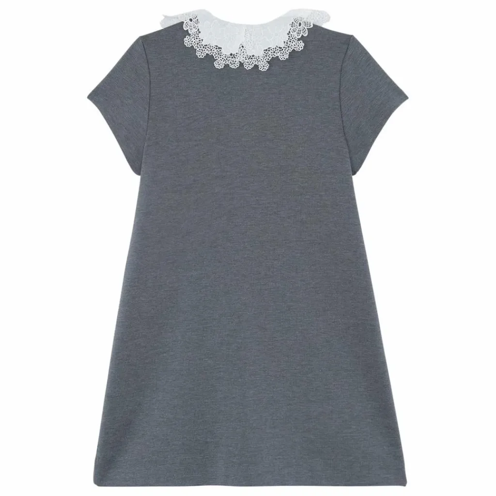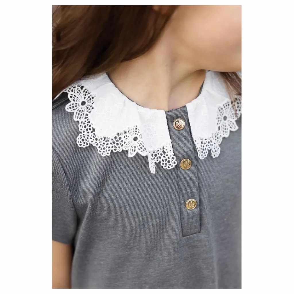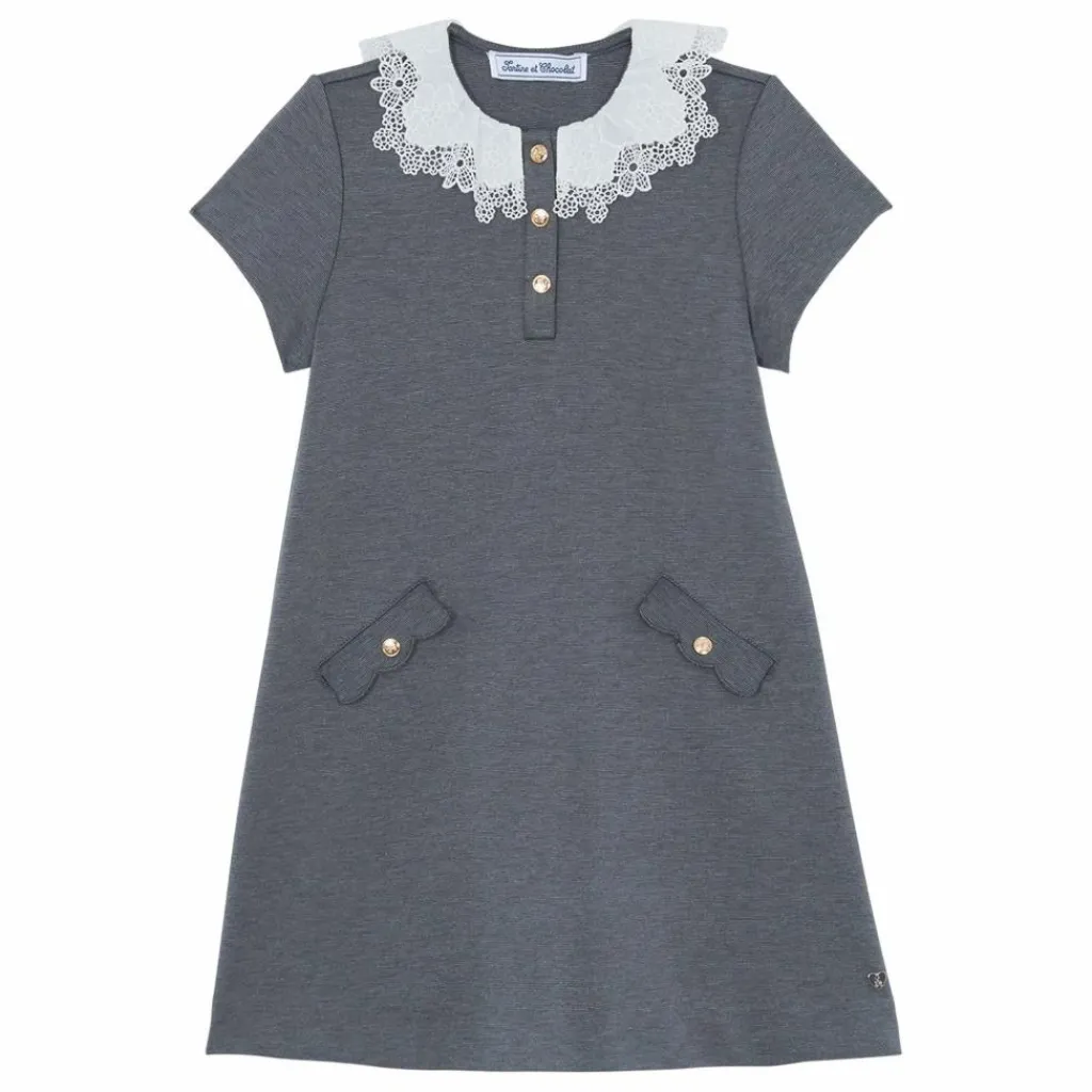 - Cette robe pour junior fille, en coloris gris foncé chiné, se distingue par son style intemporel rehaussé de détails élégants. Elle présente un col volanté orné de délicates broderies et de petits boutons sur le haut. Deux poches plaquées sur le devant viennent compléter cette pièce, idéale pour composer une tenue à la fois chic et douce.
