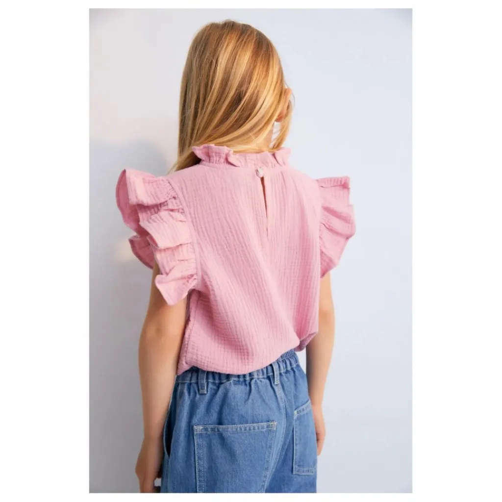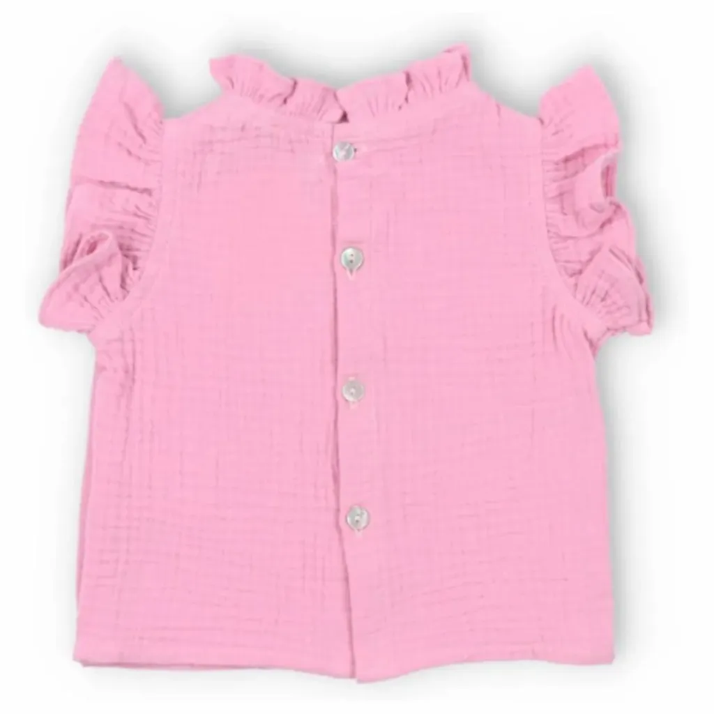 - Chemisier Spyros Baby en mousseline 100% coton dans notre couleur hibiscus. Broderie TNS Kids assortie.