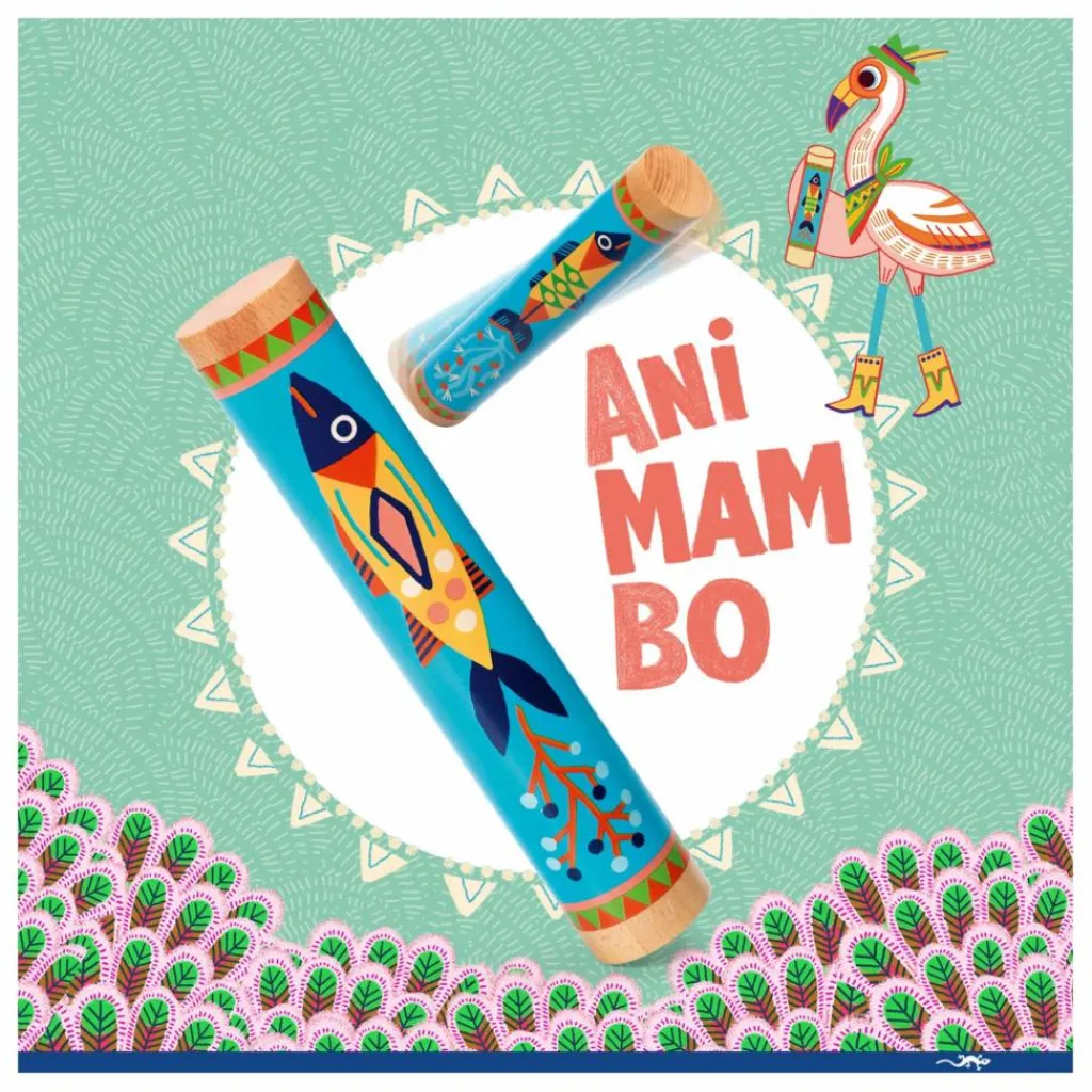 - Un grand bâton de pluie coloré et joliment illustré d’un poisson. L’enfant secoue le bâton de pluie pour donner le rythme ! Le cadeau idéal pour les petits musiciens dès 3 ans.