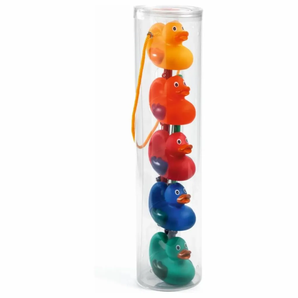- Une pêche à la ligne qui comprend 2 cannes à pêche et 5 canards aux couleurs de l’arc-en-ciel. Avec un peu d’habileté et beaucoup de fous rires, les pêcheurs en herbe vont bien s’amuser !