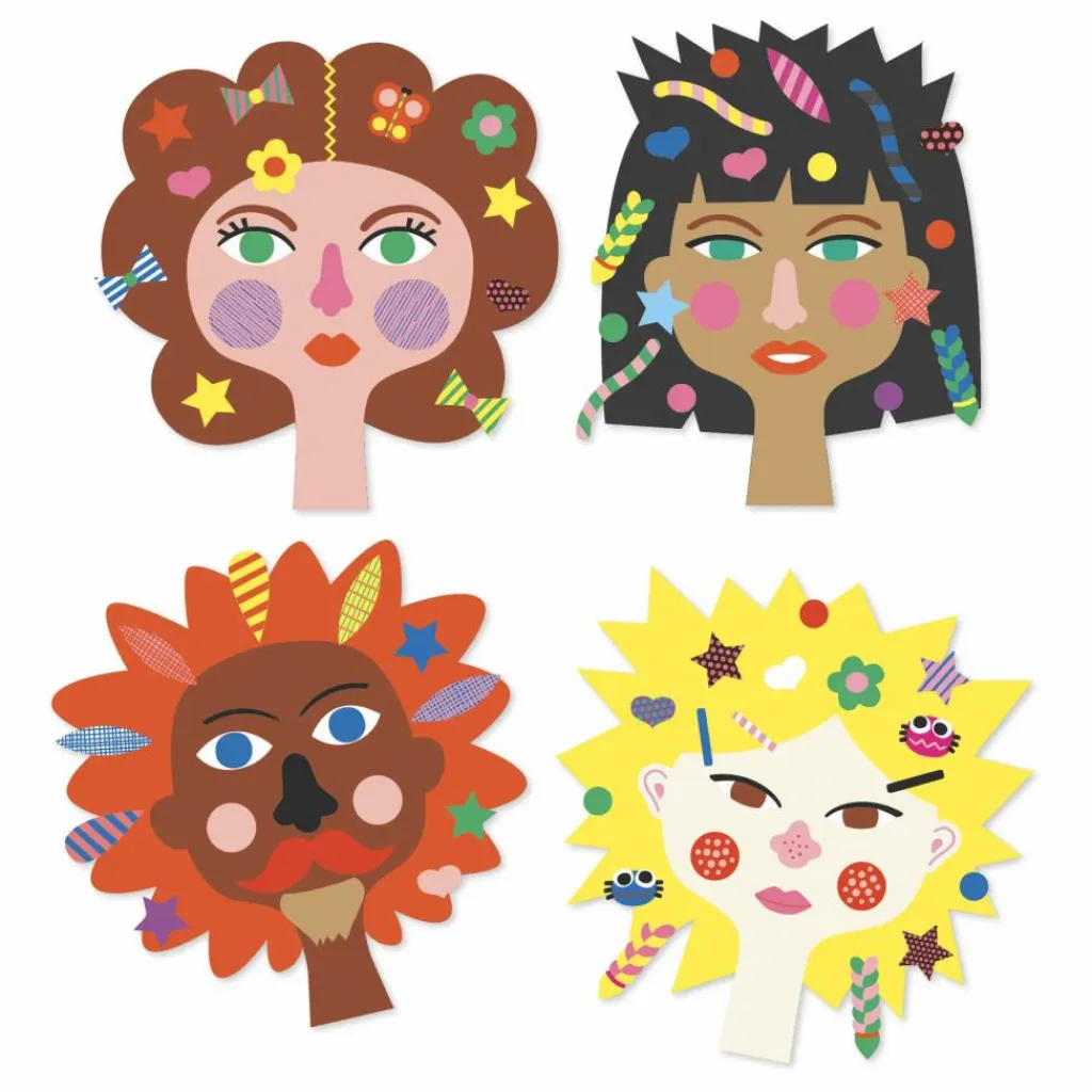 Réalisez vos plus belles coiffures avec le kit de stickers Coiffeur de Djeco. Vous trouverez les minois de plusieurs personnages à partir desquels vous serez libres de trouver la coiffure idéale ! Une activité simple et ludique de découpage et de collage de gommettes pour donner vie à vos personnages préférés.