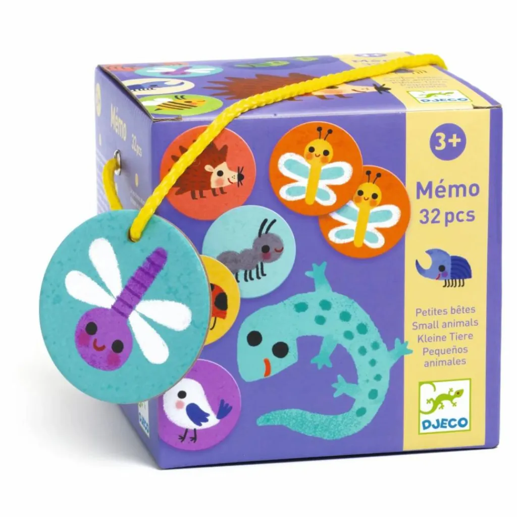 Un jeu d’association d’images et de mémorisation illustré de petites bêtes joliment dessinées.