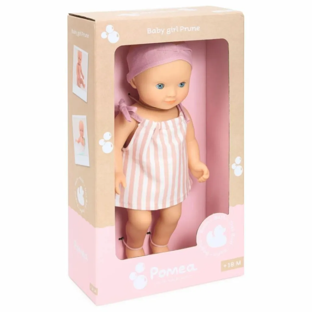 - Toujours partante pour s’amuser dans l’eau, Baby Prune est un bébé baigneur fille ! Avec son corps en vinyle tout doux, cette poupée est l’amie idéale pour des baignades à la mer, à la piscine ou dans le bain. Elle est légère et sa taille (32 cm) est parfaitement adaptée aux petits bras des enfants, dès 18 mois. Ses bras et ses jambes sont articulés pour l’asseoir comme un vrai bébé, et avec ses yeux dormeurs elle s’endort quand on la couche sur le dos.