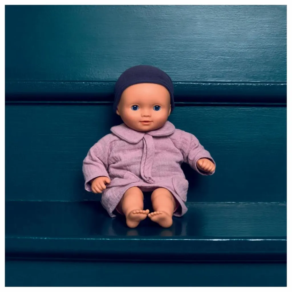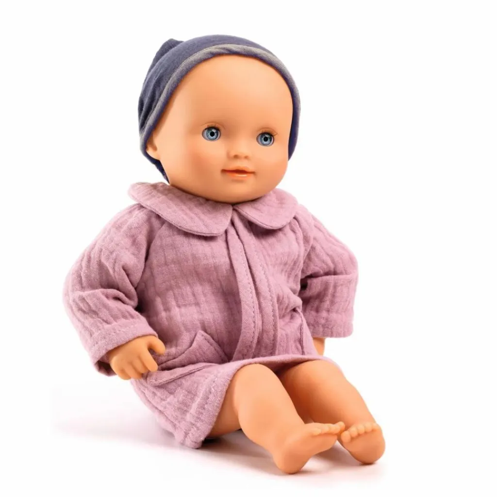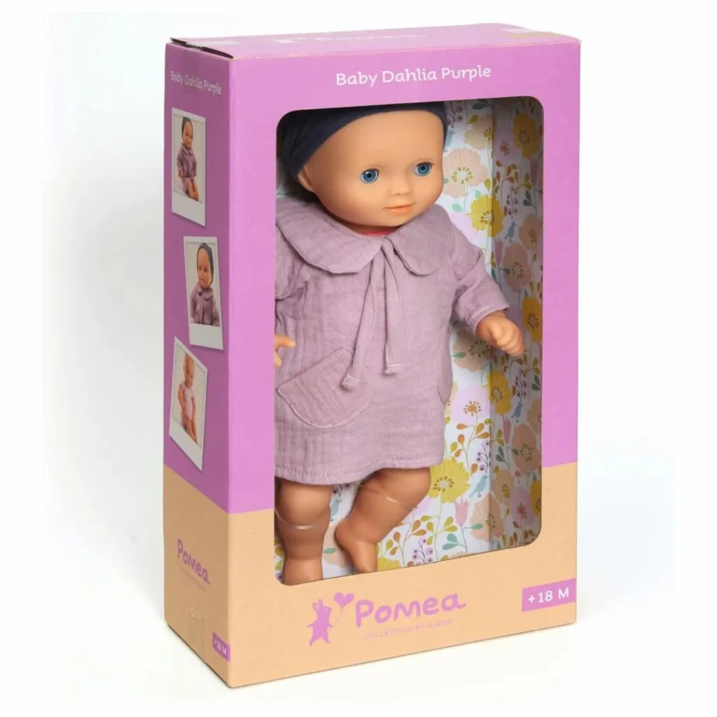- Avec ses grands yeux bleus foncés et son visage d’ange, Baby Dahlia Purple est une poupée pour les enfants dès 18 mois. Elle est légère et sa taille (32 cm) est parfaitement adaptée aux petits bras. Son corps souple, imprimé d’un body, permet de la positionner comme un vrai bébé. Son visage, ses bras et ses jambes sont en vinyle très doux, agréable au toucher. Avec ses yeux dormeurs, elle s’endort quand on la couche sur le dos. Ce poupon est habillé d’une robe et d’un foulard sur la tête en belle matière double gaze 100 % coton.
