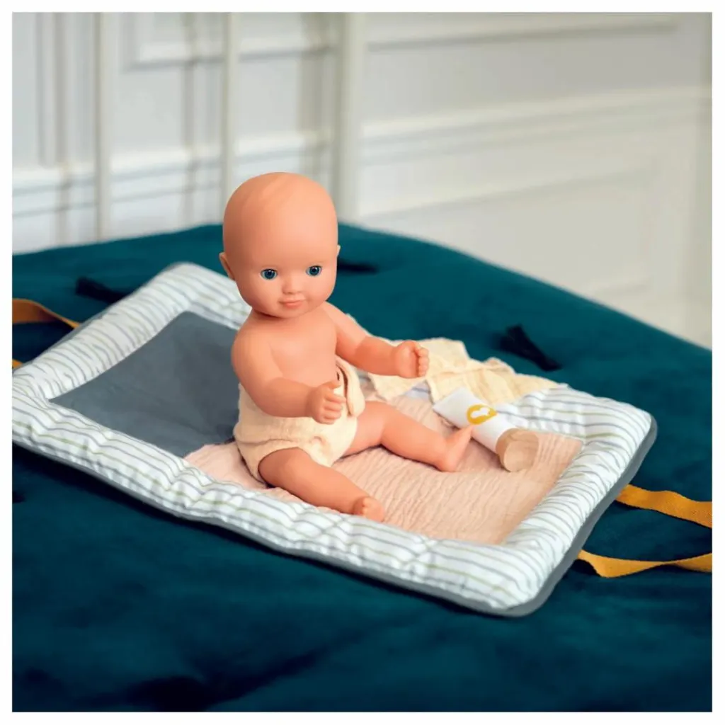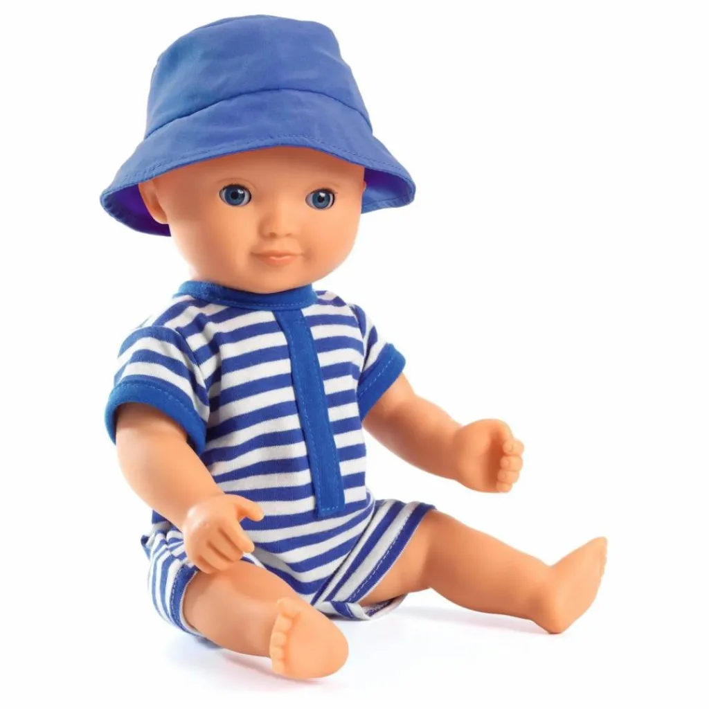 - 1 poupée baigneur 32 cm en vinyle, 1 combinaison, 1 bob.