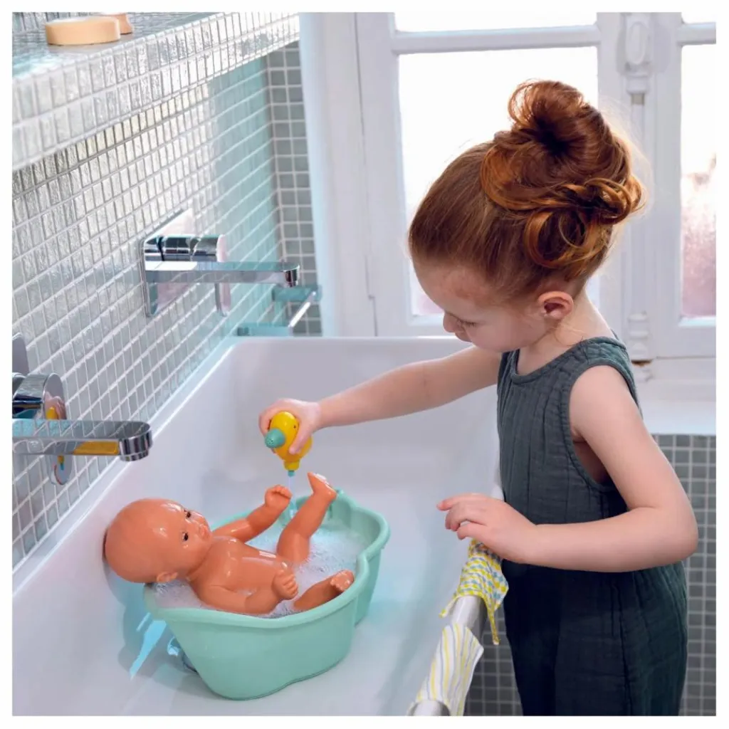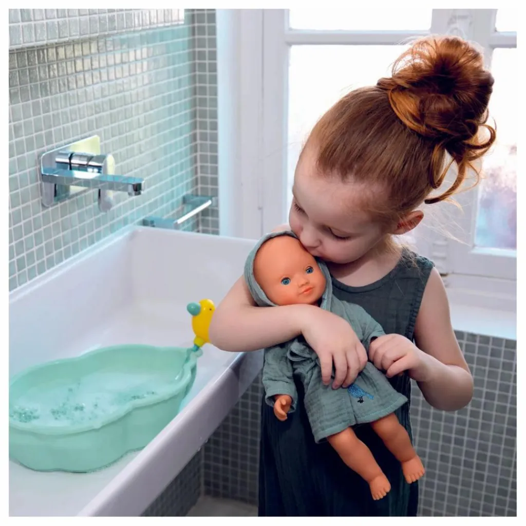 - Toujours partant pour s’amuser dans l’eau, Baby Olive est un bébé baigneur garçon. Avec son corps en vinyle tout doux, Olive est l’ami idéal pour des baignades à la mer, à la piscine ou dans le bain. Il est léger et sa taille (32 cm) est parfaitement adaptée aux petits bras des enfants, dès 18 mois. Ses bras et ses jambes sont articulés pour l’asseoir comme un vrai bébé, et avec ses yeux dormeurs, il s’endort quand on le couche sur le dos. Olive est habillée d’une combinaison à rayures en jersey et porte un bob sur la tête.
