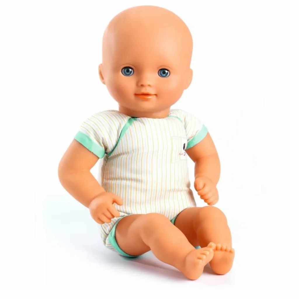 - 1 poupée de 32 cm (corps en tissu et tête, bras et jambes en vinyle), 1 pyjama et 1 béguin.