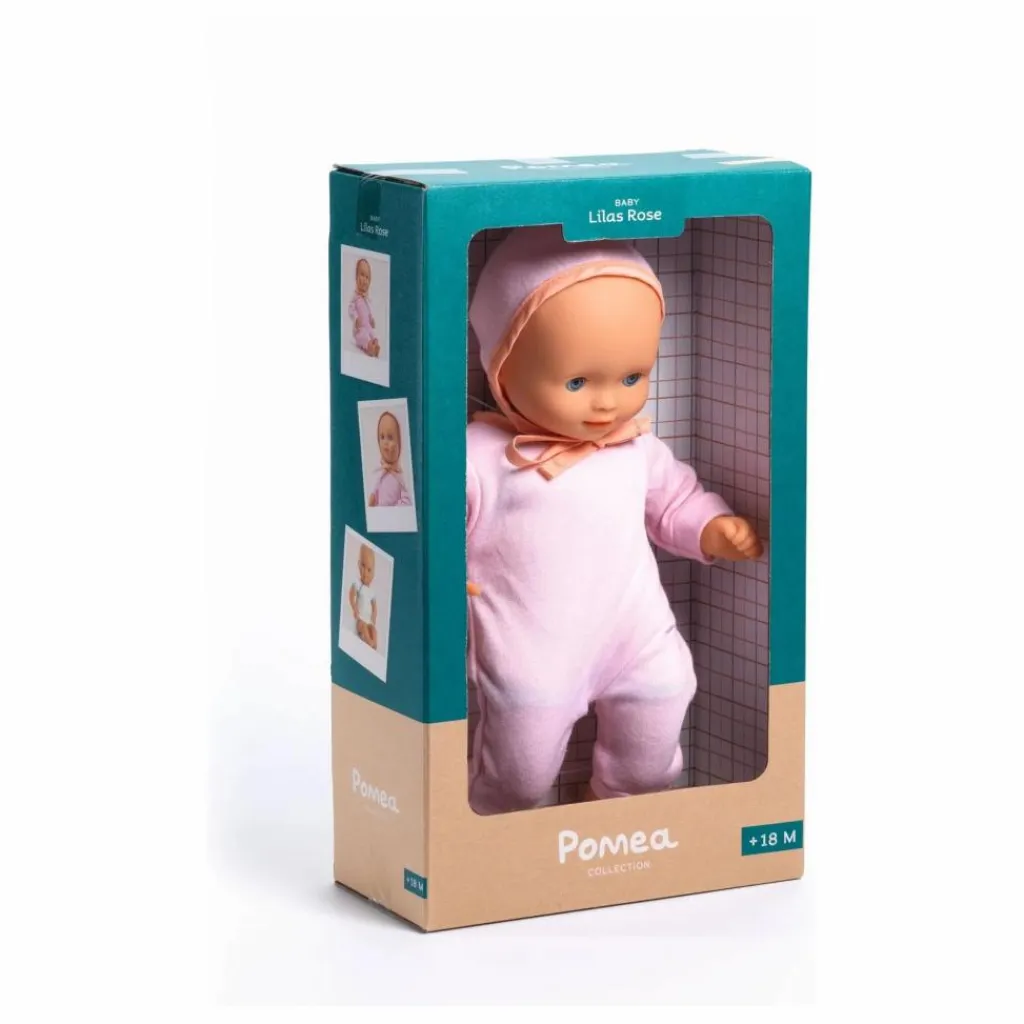 - Avec ses grands yeux bleus et toute de rose vêtue, Baby Lilas Rose est une poupée pour les enfants dès 18 mois. Elle est légère et sa taille (32 cm) est parfaitement adaptée aux petits bras. Son corps souple est imprimé d’un joli « body »et permet de la positionner comme un vrai bébé. Son visage, ses bras et ses jambes sont en vinyle très doux, agréable au toucher. Avec ses yeux dormeurs, elle s’endort quand on la couche sur le dos. Ce poupon est habillé d’un pyjama et d’un béguin bi-matière en jersey et en popeline.