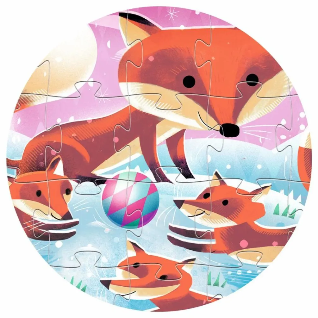 - La saison préférée de Ginger, le petit renard ? L’hiver. Dans un décor enneigé, il s’amuse comme un petit fou ! Un magnifique puzzle de 24 pièces dans une boîte élégante en forme de renard.