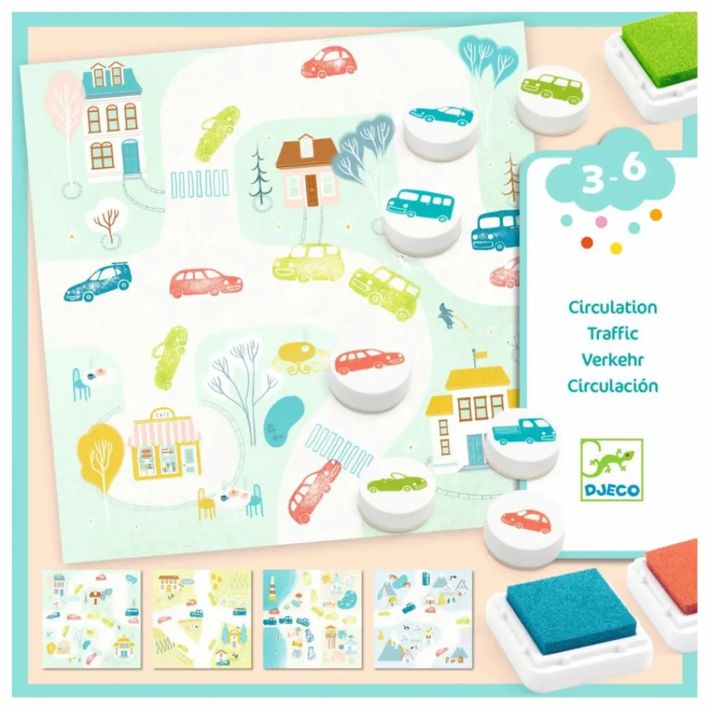 Ce coffret de tampons sur le thème des véhicules permet à votre enfant de décorer librement les cartes aux douces illustrations. Progressivement, il encre les tampons et marque les empreintes pour animer les décors en laissant libre cours à son imagination. Les cartes s’assemblent pour créer de fabuleux parcours.