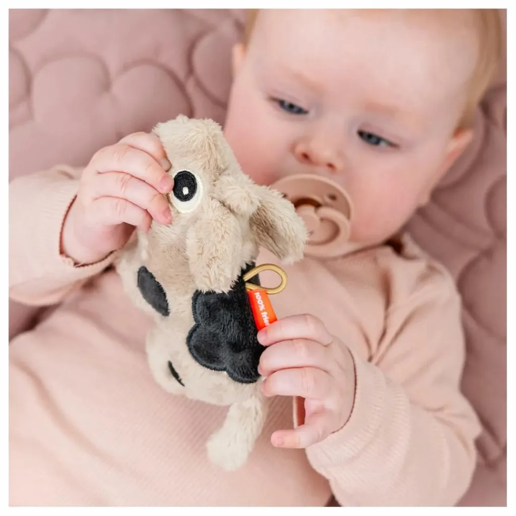 • Grâce au clip velcro, la sucette est toujours à portée de main