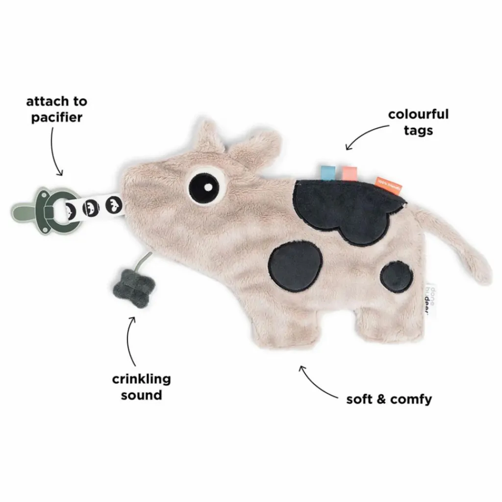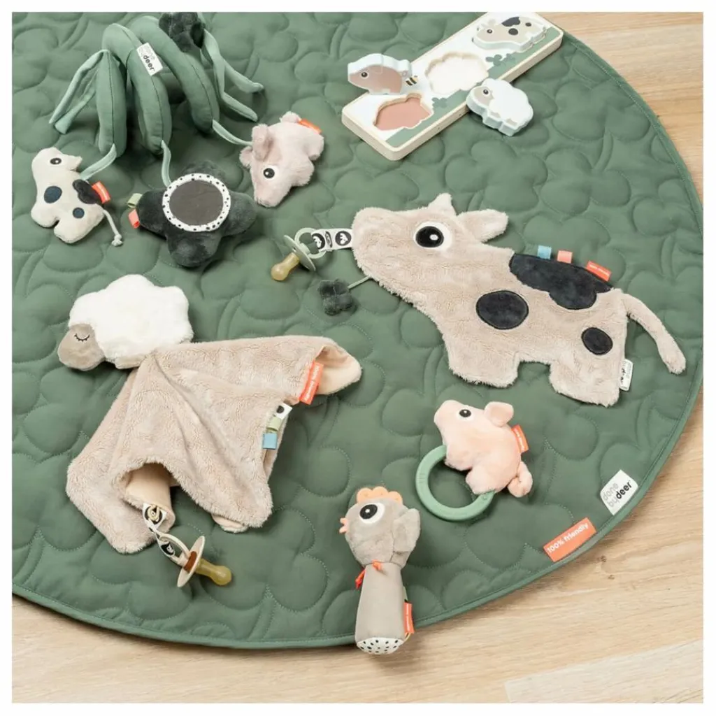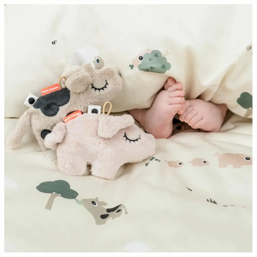 • Coloris beige avec des contrastés noir et blanc et des rubans colorés pour la stimulation visuelle
