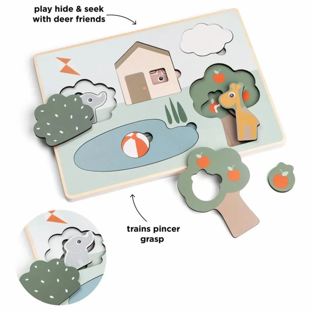 - • À l’aide de ce puzzle encastrable, votre enfant pourra entraîner sa motricité fine et la prise en pince